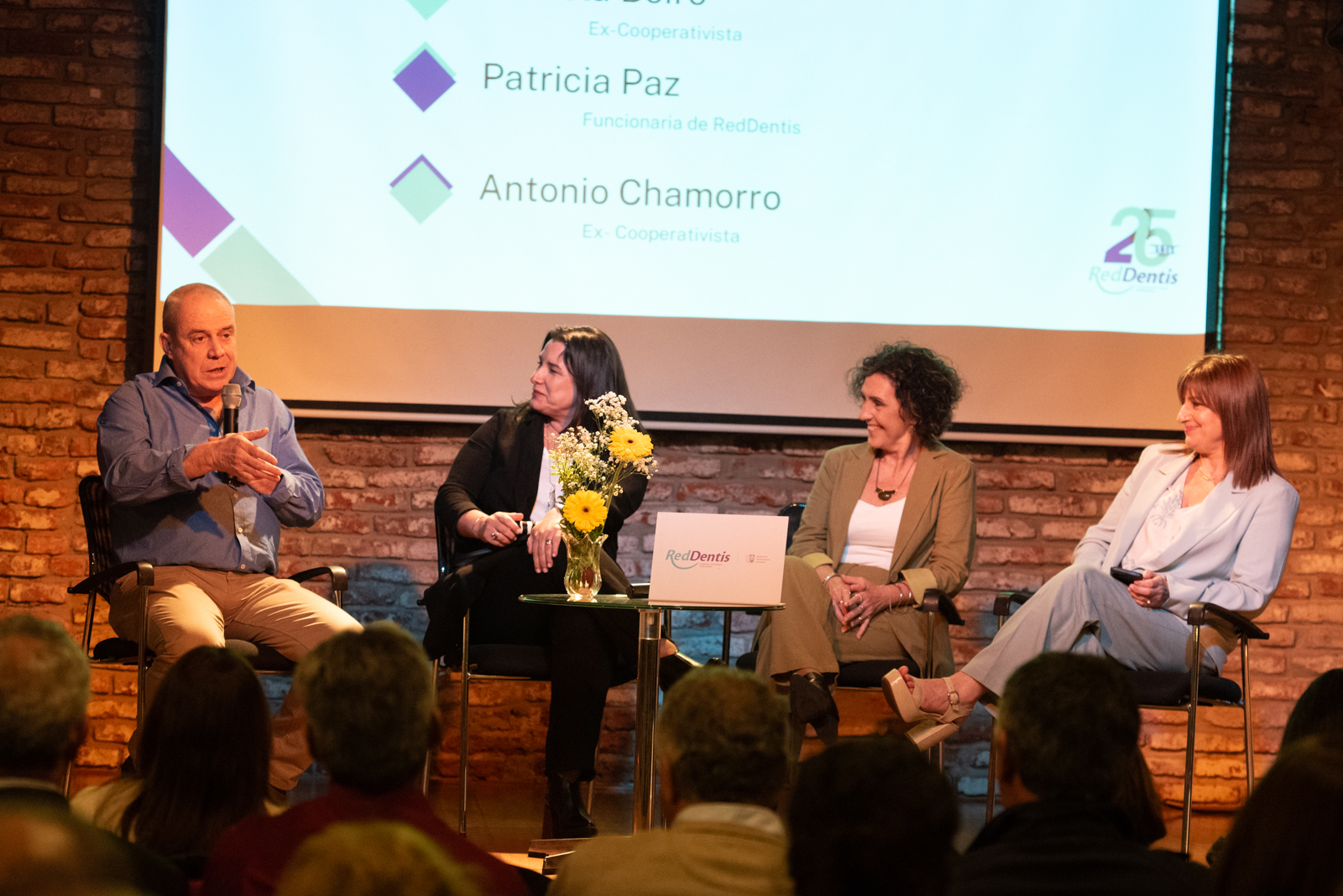 “A lo largo de sus 25 años, RedDentis ha crecido gracias a su vínculo con otras organizaciones”, comenzó señalando Fernando Braga, odontólogo responsable de ser el anfitrión del evento. Se invitó a representantes de instituciones clave como INACOOP, Asociación Odontológica Uruguaya, la Unidad de Economía Social y Solidaria de la IM y a la Federación de Cooperativas de Producción del Uruguay a que participar de un diálogo donde compartieron anécdotas y reflexiones sobre el impacto de RedDentis en el sector. Así lo hicieron Andrés Carrasco, vicepresidente de INACOOP, a Enrique Laxague presidente de la Asociación Odontológica Uruguaya, a Valeria Pignolo, coordinadora interina de la Unidad de Economía Social y Solidaria de la Intendencia de Montevideo, y a Richard Silvera, presidente de la Federación de Cooperativas de Producción del Uruguay.